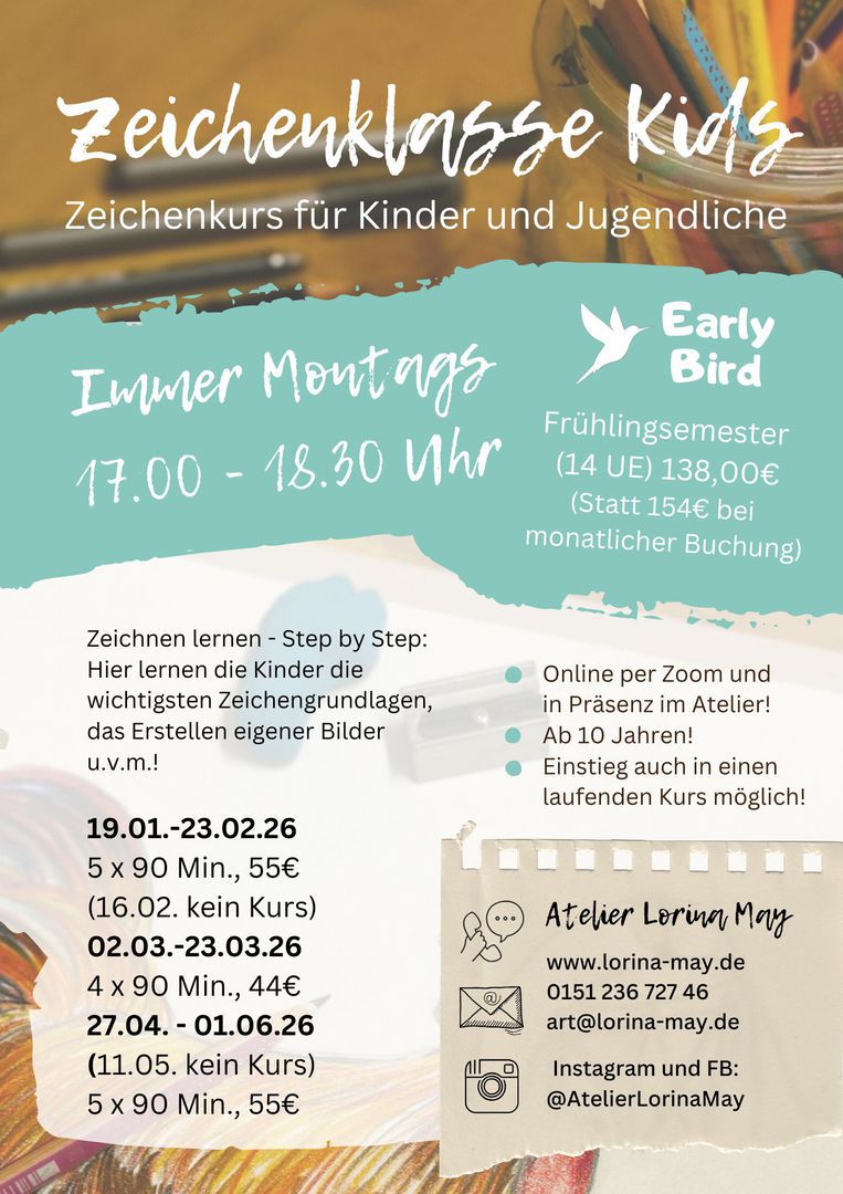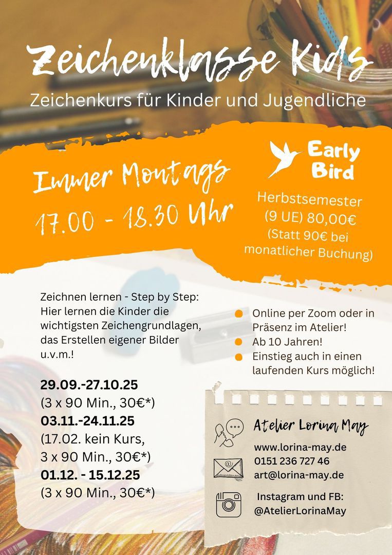 Hier gibts alle Infos kompakt zusammengefasst zur "Zeichenklasse - Kids":