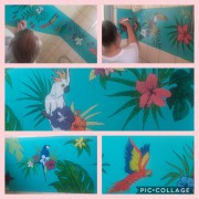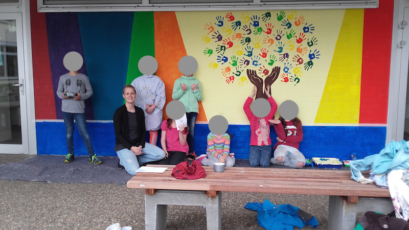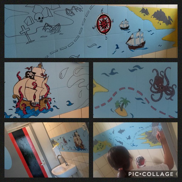 an der grundschule im wiesengrund führe immer wechselnde projekte durch. im sommer 2018 wurden zum beispiel mit den kindern der 3. und 4. klassen die außentoiletten verschönert. mit lackfarbe zauberten die kinder schönste bilder auf die fliesen und machten die außentoiletten so zu einem etwas freundlicherem ort. aus der mädchentoilette wurde so "tropic islands" und aus der jungentoilette eine "pirates bay".