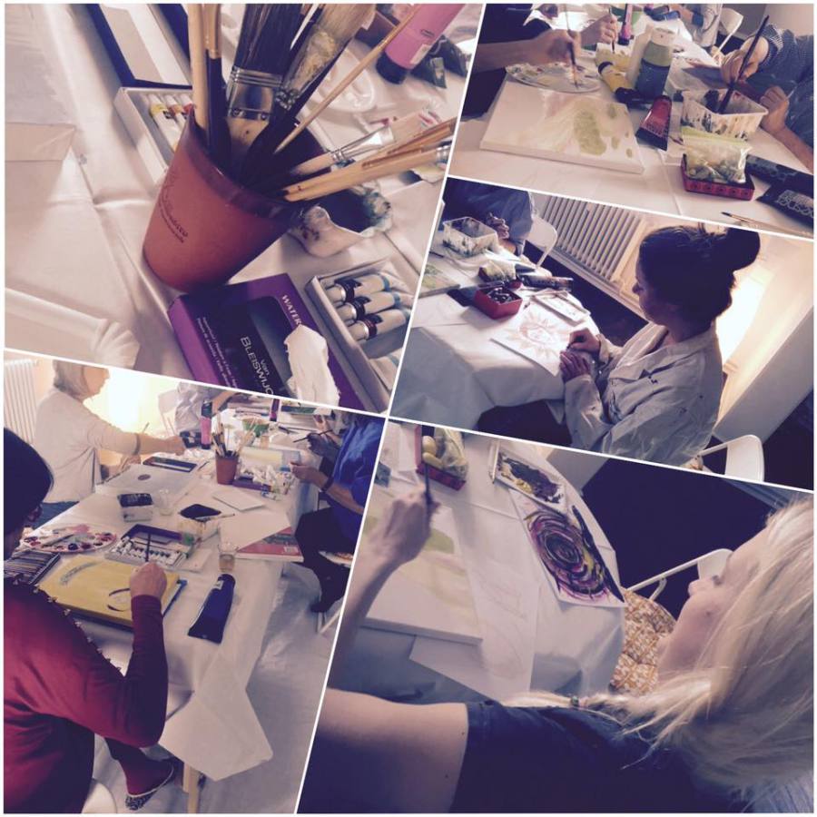 der workshop war zauberhaft und für alle beteiligten ein inspirierender, entspannender tag. nach ein paar yogaflows und einer fabelhaften meditation als reise durch unbewusste, haben wir anschließend unsere entstandenen bilder im kopf und unsere innersten wünsche auf leinwand gemalt. sabine forberger und ich werden den workshop vermutlich im sommer 2017 wiederholen.